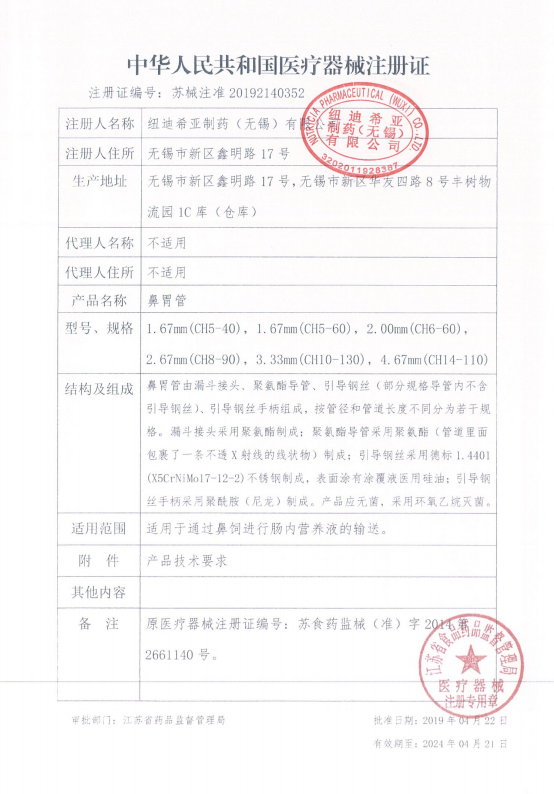 鼻胃管【紐迪希亞制藥(無(wú)錫)】